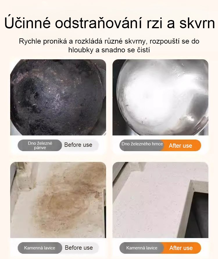 Silné čištění, osvěžování, čištění a leštění, odvádění vody a odstranění rezi, bez poškození zařízení